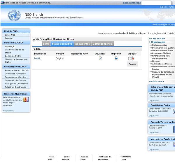 A CAPOLBRAS solicitou ao Conselho Econômico e Social das Nações Unidas (ECOSOC), elegibilidade para obter sSTATUS CONSULTIVO NA ONU (Nações Unidas). O status prevê uma série de privilégios de acesso e participação no Conselho de Direitos Humanos, um dos principais espaços de atuação da sociedade civil no sistema universal de direitos humanos.